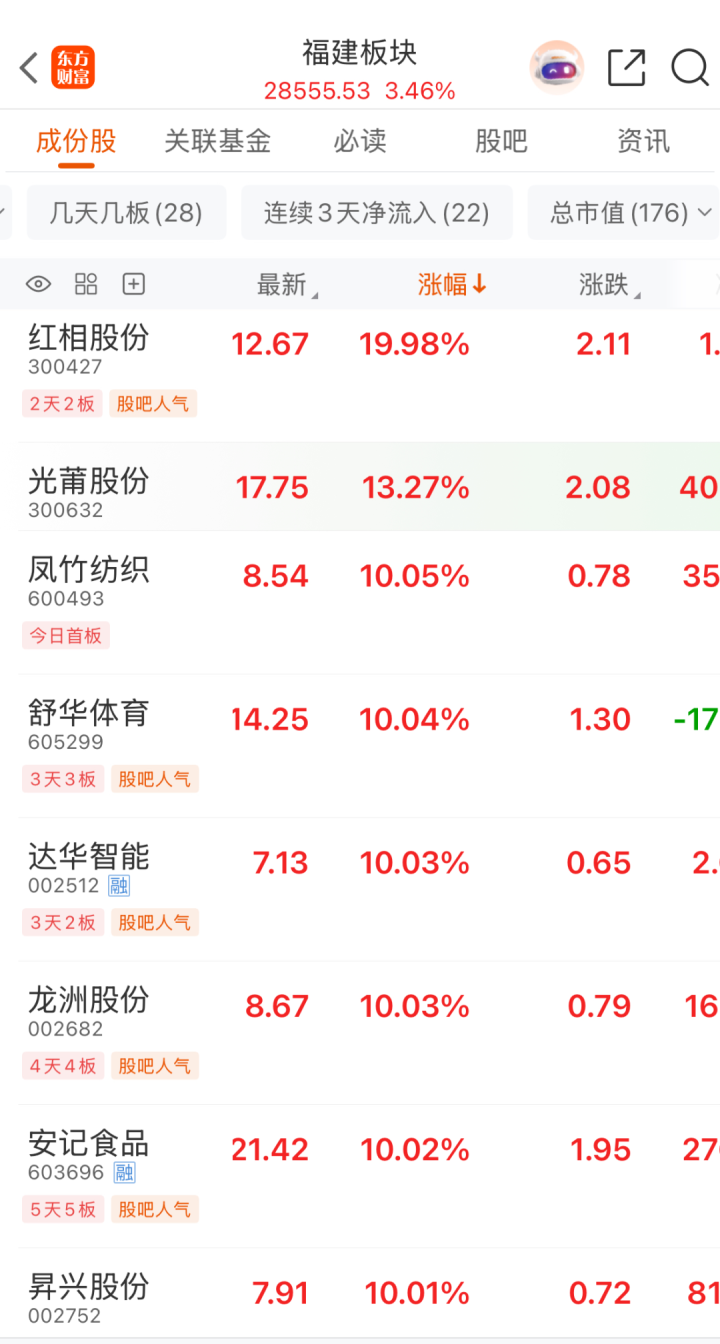 午后,福建本地股再度拉升。永辉超市、厦门空港、厦门港务、榕基软件迅速涨停,此前红相股份、凤竹纺织、达华智能、龙洲股份等多股涨停。