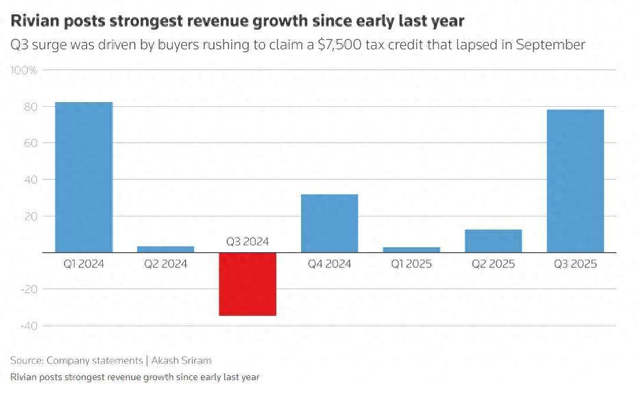 与Rivian一样,整个电动汽车行业正面临诸多挑战:关税导致成本上升、电动汽车销售预测放缓、新产品开发难题、监管政策变化(包括联邦消费者激励政策终止)对销售额和利润造成负面影响。